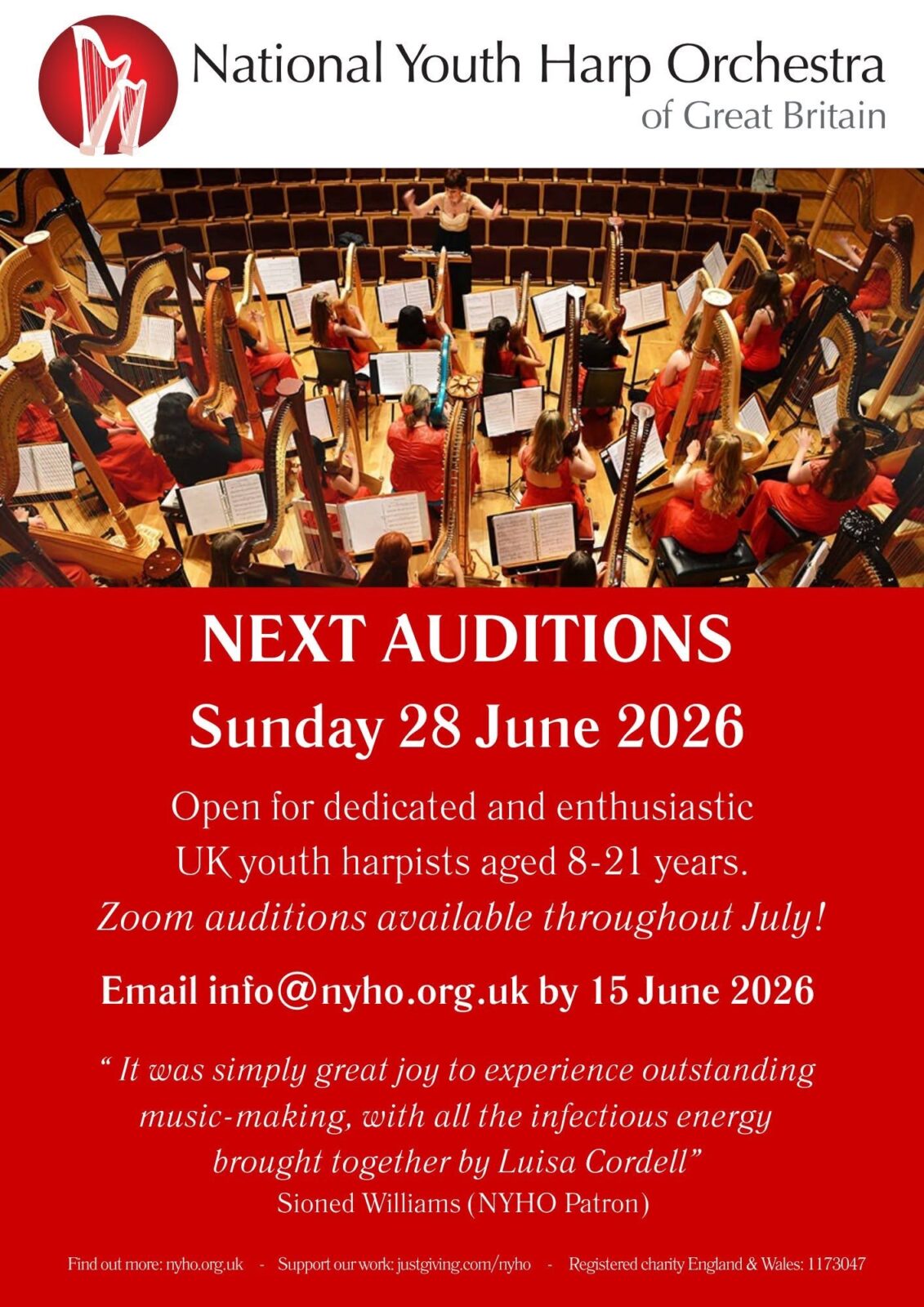 Our next auditions take place on Saturday 28th June 2026. (Zoom auditions also available by arrangement. Deadline for applications is 15th June 2026. For more information and an application form, please email info@nyho.org.uk